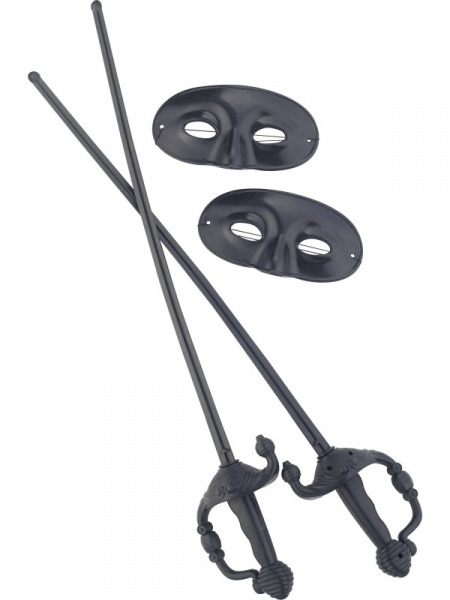 Součásti sady pro bandyty jsou dvě černe škrabošky a dva plastové kordy.